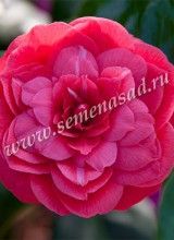 Кустарник вертикальный, вечнозеленый с глянцевыми, темно-зелеными листьями. Цветки двойные, с углублением в центре, при полном роспуске звездчатые, махровые малиновые с легкими белыми полосками. Лепестки цветков имеют округлую форму к центу заостренные. В природе высота данного сорта достигает 1,5-2м., при выращивании в кадках, его размеры куда скромнее. Цветение с февраля по май. Зимует с укрытием.